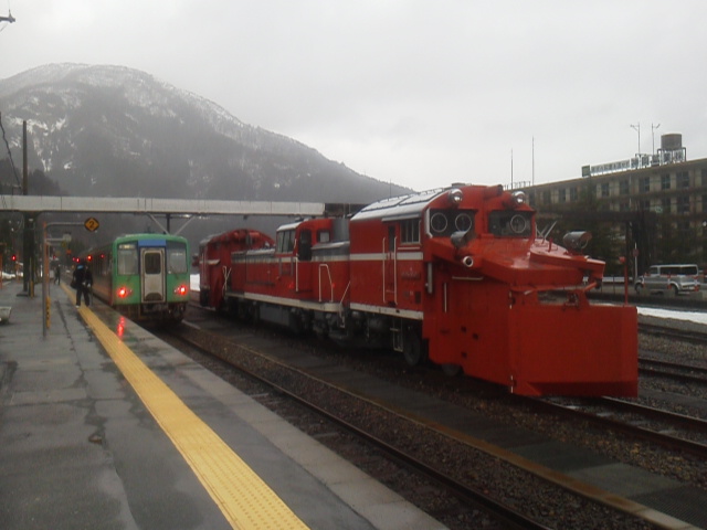 ラッセルヘッドフル装備のDE15が、がっつり停まってます。