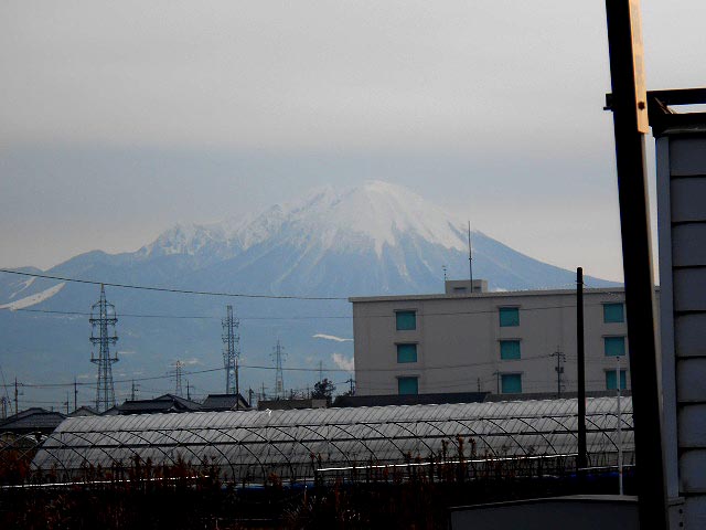 雪を頂いた大山を遠くに眺めつつ、待つこと暫し…