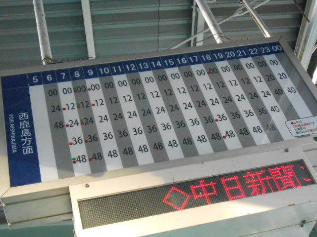 ③ 時間帯に拘わらず、12分間隔の超パターンダイヤである。