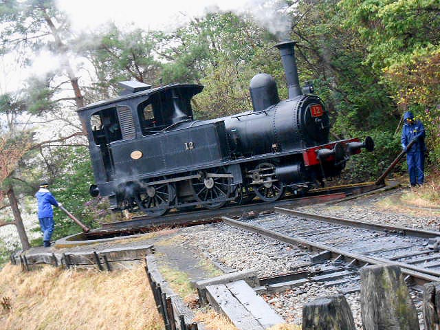 短区間ながら双方の駅に転車台があって、人力で方向を変えます。