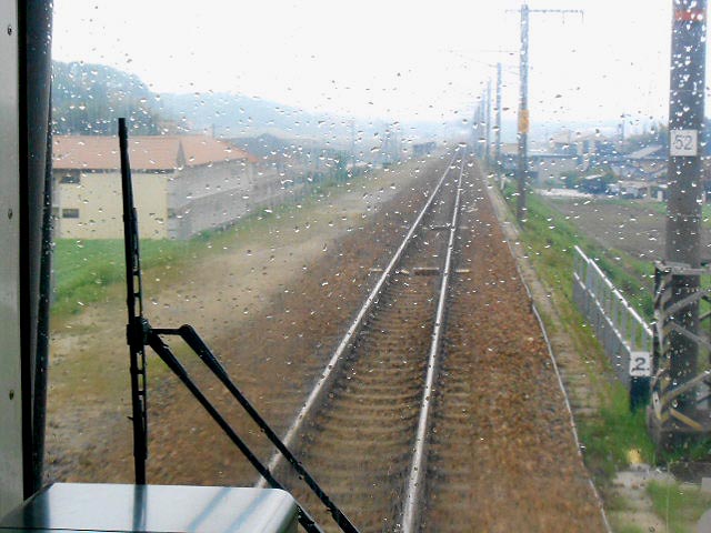 時折、対抗列車とすれ違いますので「足元」をガン見する感じで