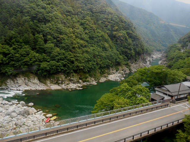 車窓には吉野川が寄り沿って左右にウネってますが、