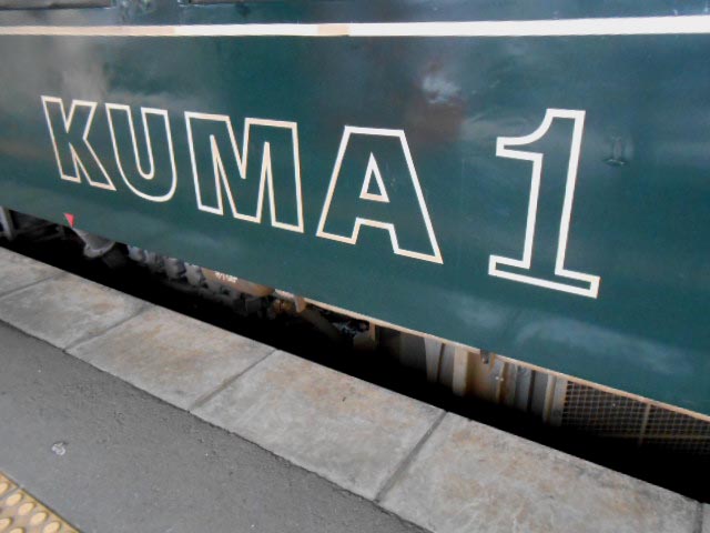 で、ホームに待ってた車両がコレ。同社の「観光列車KUMA」ですね。