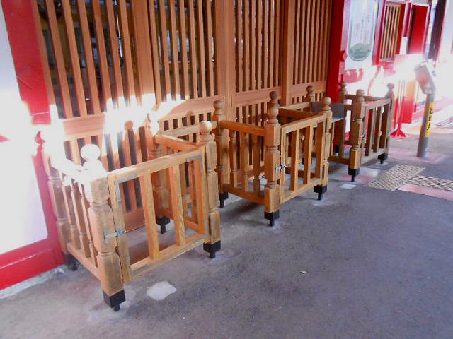 神社建築を模してあるんでしょう。本数の少ない駅なのに豪華な造り