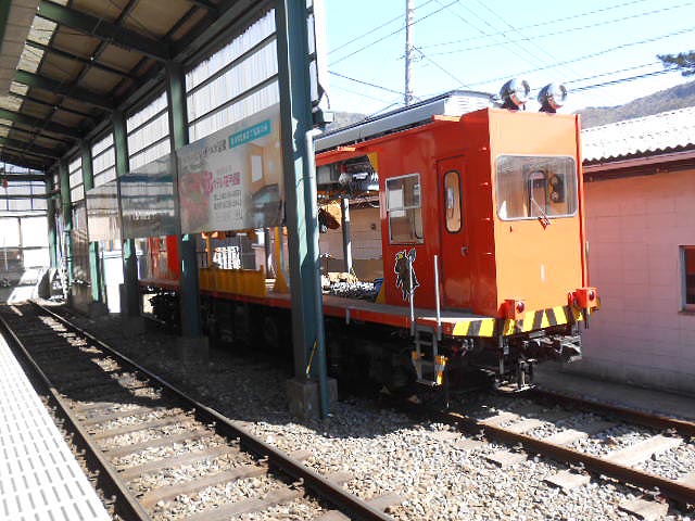 側線に置いてあった工事用と思しき車両に、可愛いイノシシの