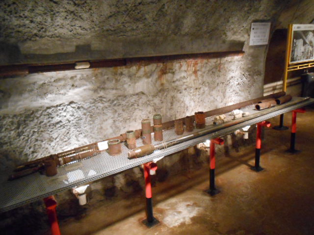 置いてある長い筒のようなモノは、掘り進む先にある地面の地質