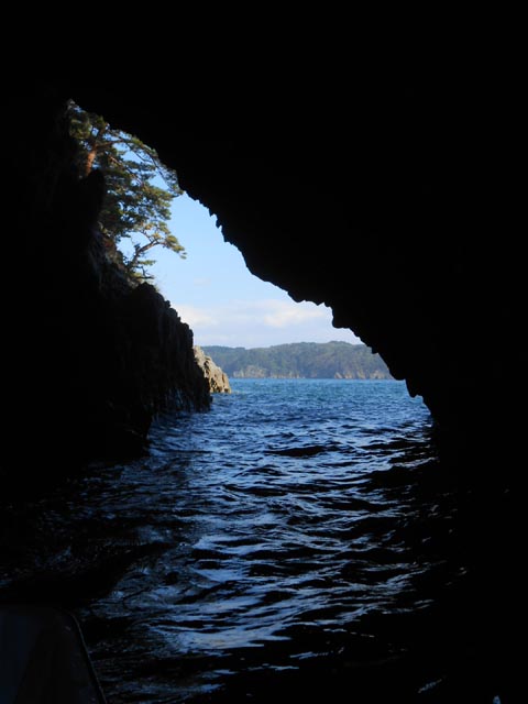 リアス式に入り組んだ湾内を、小さな船の低い目線から見るので、