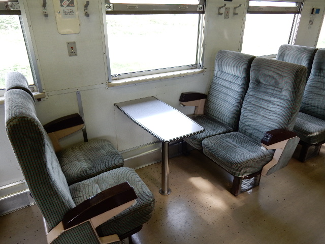 ドコかの特急車から外してきたような回転クロスシートが付いてますが