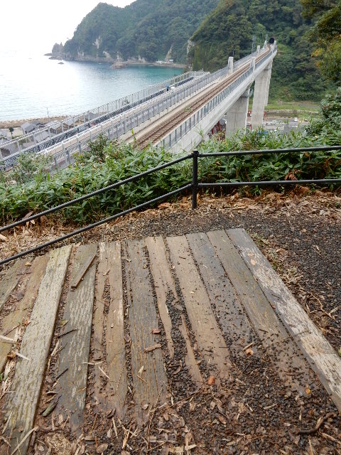…駅へ向かう山道から途中で反対方向へ折れて、橋の下をくぐります。