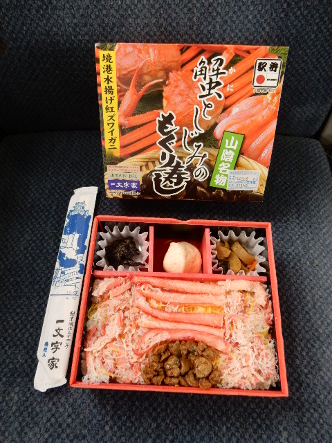 「カニとしじみのもぐり寿司」…境港のカニと宍道湖のシジミでしょうね。