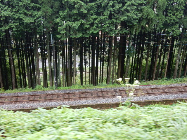 車窓の右手に、木々の隙間からではありますが登ってきた線路が