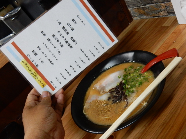 豪雨で冷え切った所に、本格的な九州ラーメンは非常に美味でした。