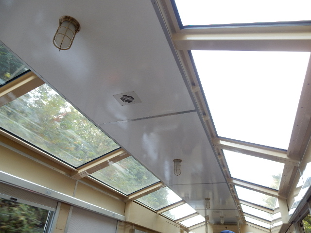 客車には全て、大きな天窓がついています。時々落ち葉が乗るのよ。