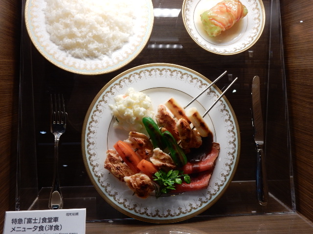 右が昭和初期の洋食堂車のディナーの一つらしいです。…鶏肉を使った