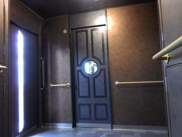乗務員室にもエントランスと同じデザインの貫通扉がありますが、