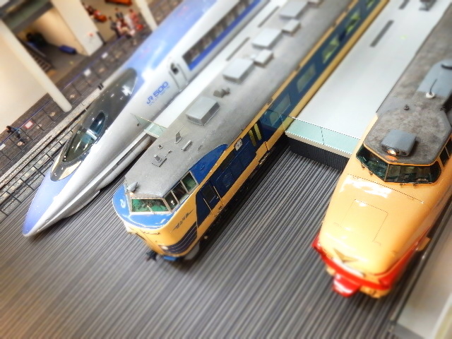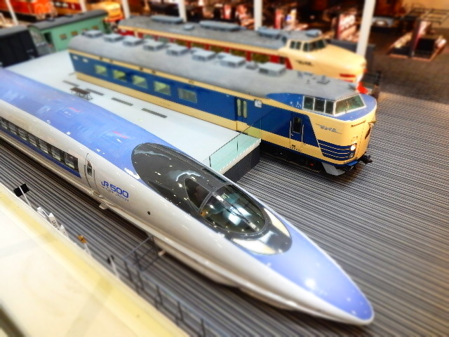 博物館内の車両を頭上から撮った画像を「ミニチュア化」というモードで
