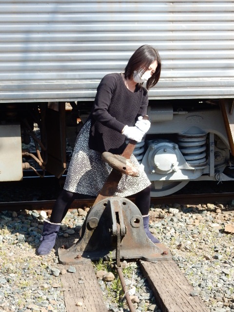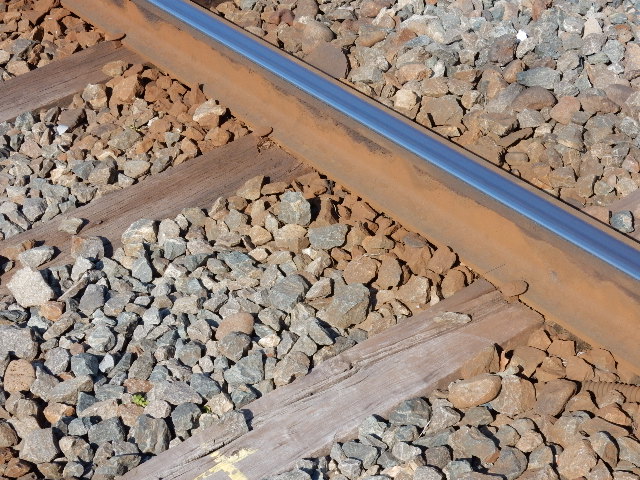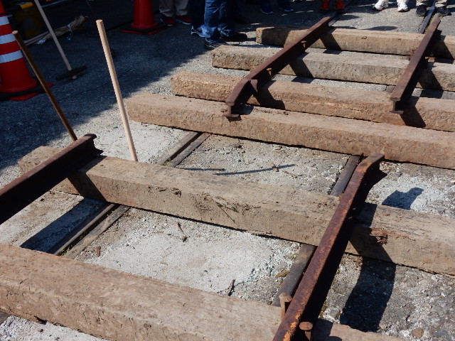体験用なので古い枕木の裏側と、コレまた古いレール…踏切とかの