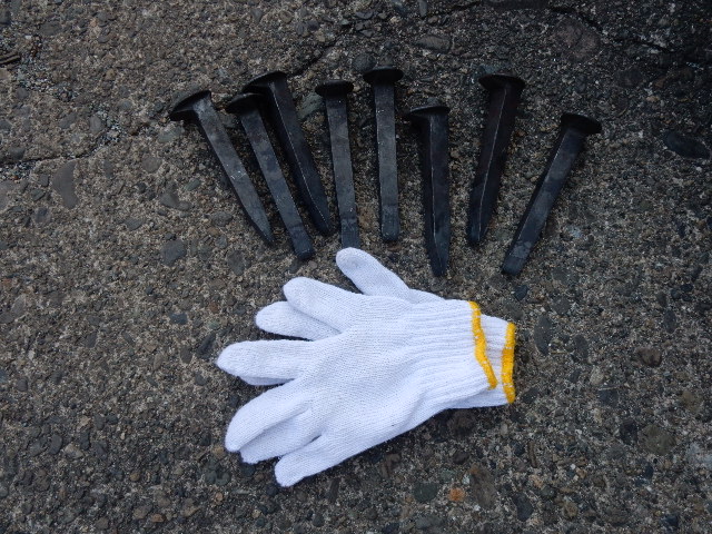 この犬釘を大きなハンマーで打ち込み、金テコで引っこ抜くまでの作業