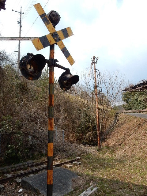 合わせて「小物」的な配置として、踏切の警報機と腕木信号機が保存