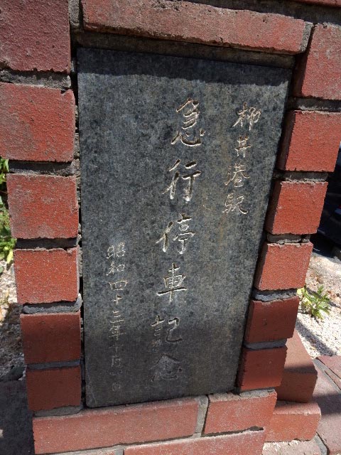 その柳井港の駅前に、このような石碑がありました。「急行停車記念」?