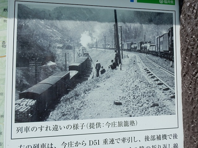 残ってます。本線跡を今庄方向に下りながら見てみますが…長い!