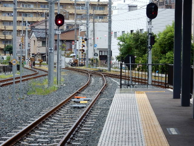 低床式のLRT車のホーム。階段にして6段分の高低差がありますね。
