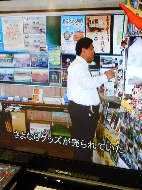 テロップは「さよならグッズが売られていた」