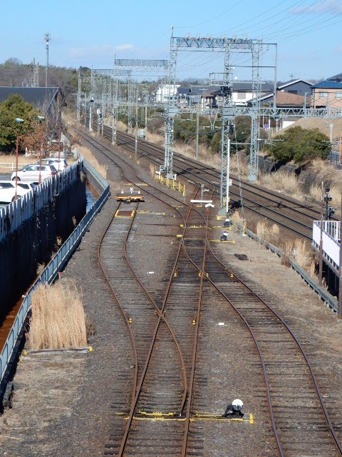 駅の北西側の入口から陸橋を登ると、さっき見えた保線基地が一望