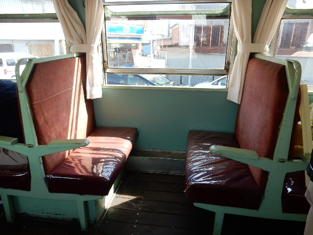 客席はクロスシートがそのまま。…飲食店になるという事で、座面部分