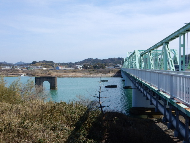 …国道の大きなトラス橋と並行して、小さな古い橋脚が残ってました。