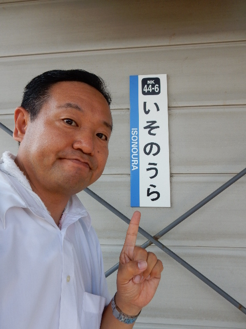 1つ手前の磯ノ浦駅へやってきましたクラ駅長です。