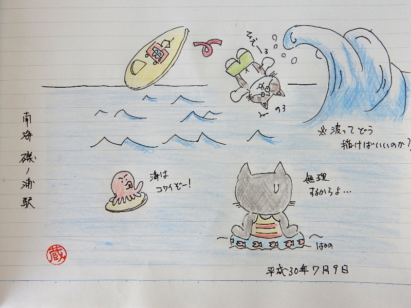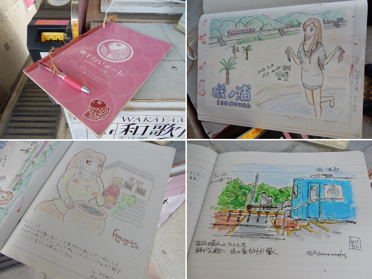 …そんな感じで加太(かだ)駅のノートを描き、「めでたいでんしゃ」で