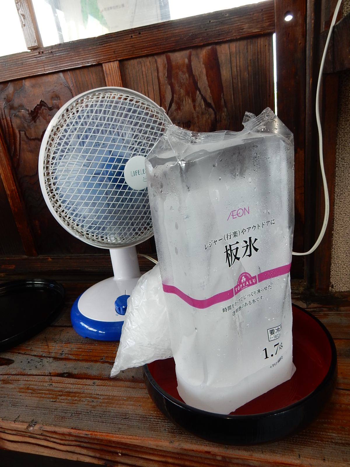 なのか、氷柱代わりのロックアイスと扇風機も用意されています。
