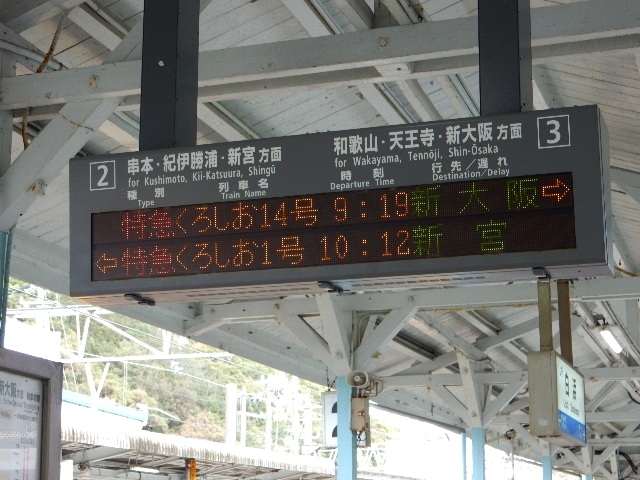 9:19発の「くろしお14号」ですね。…大阪からの距離があるので、特急
