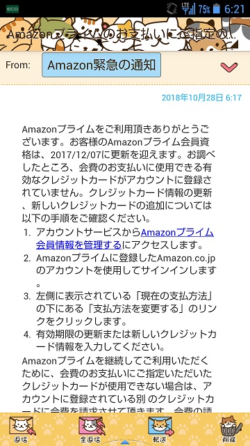 ぁ、メールの画面が猫だらけなのは私の趣味です。イイでしょコレ。