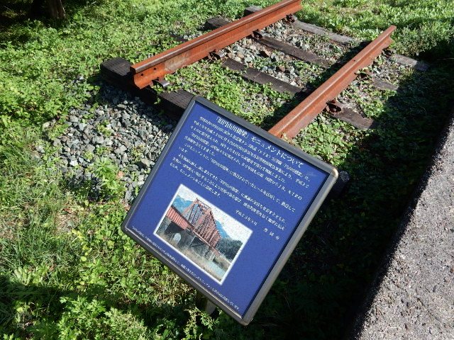 区間で円山川の橋梁に使われていた橋脚の一部が、モニュメント