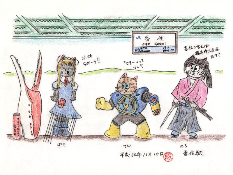 舞台は香住駅の第2ホームにしました。ぱのが着てるのが、登場人物