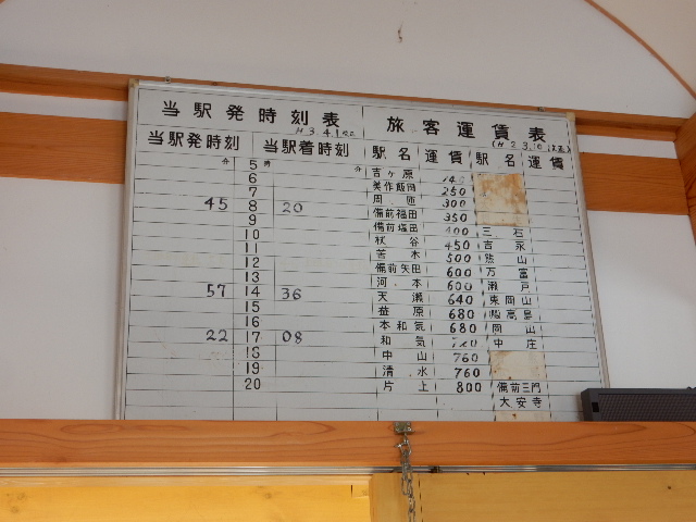 発車時刻表は廃止当時のモノでしょう。日に3往復ってのは如何にも