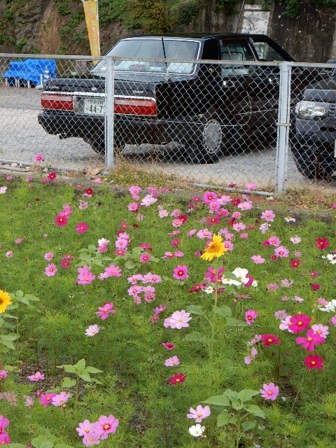 …元の線路を埋めた部分は、地元の皆さんが作る花壇になっており、