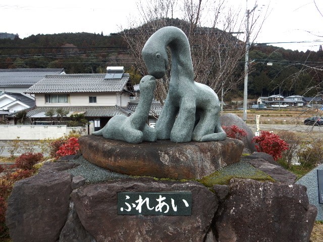 なので駅前には親子の恐竜の像が建っておりました。ケンさんも絵の