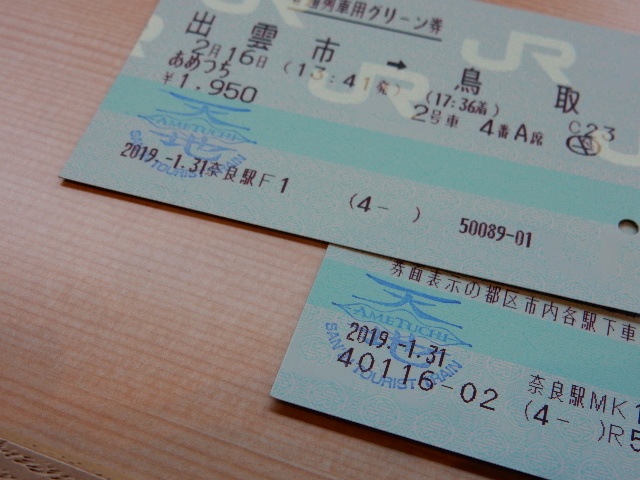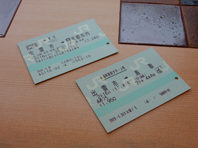乗車券は出雲市で改めてスタート。翌日に智頭急行経由で京都まで