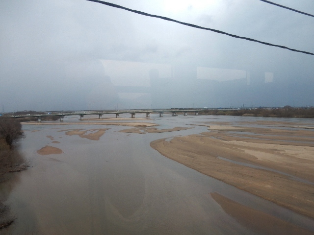 発車して程なく、斐伊川を渡ります。ココはヤマタノオロチ伝説に