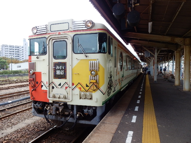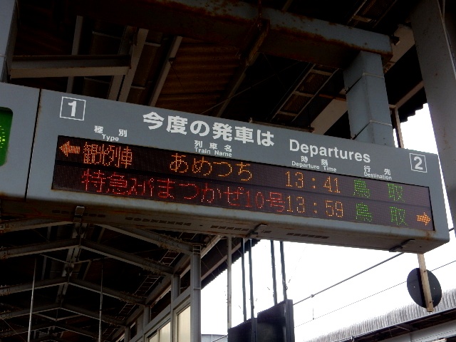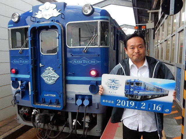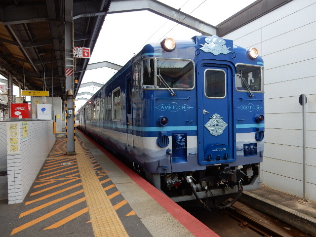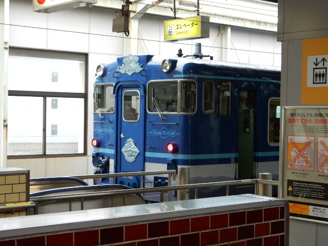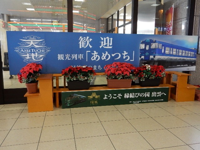 さて山陰です。出雲市駅でひと休みして、いよいよ観光列車「あめつち」