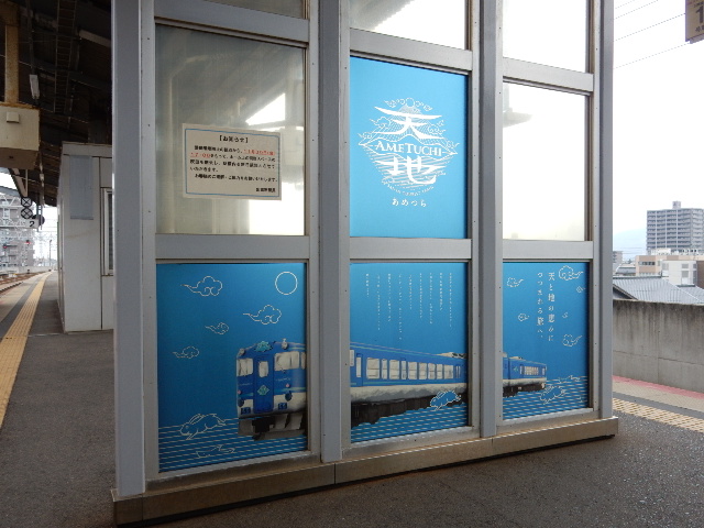 ホームのベンチスペースにも「あめつち」PRのイラストが入ってました。