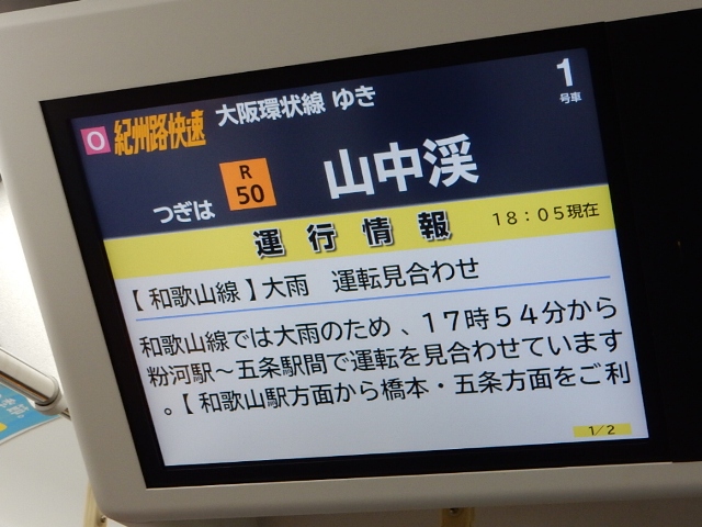 暫くはイイ気分で眺めてたのですが、車内の運行情報に「和歌山線が