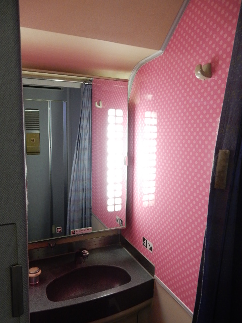 戻りました。…電話スペースや洗面所も、芸が細かく装飾されてます。