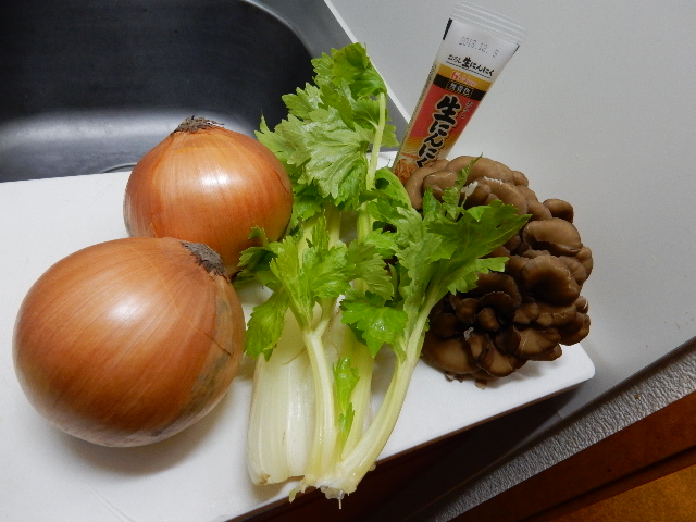 セロリとマイタケを入れるのが定番です。