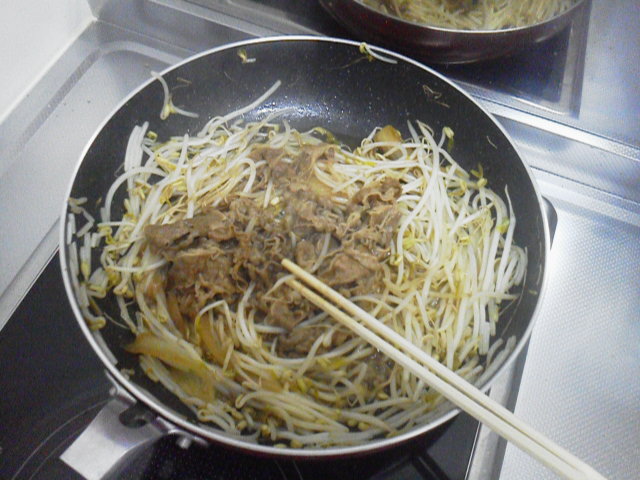 コレは…今後やるなら、もやし1袋に対して並牛皿半分ぐらいでいいぞ。