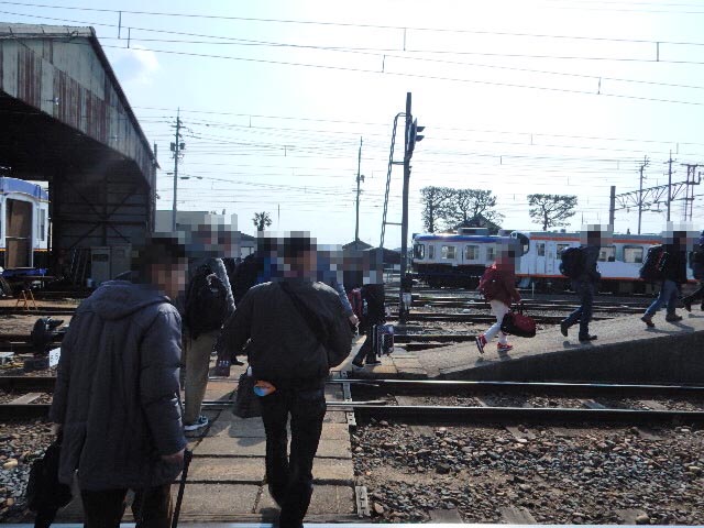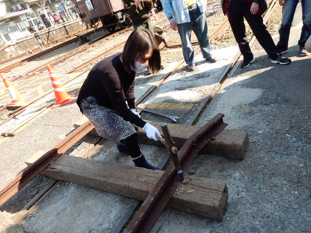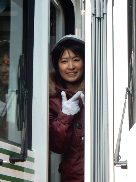 貫通路が繋がったら全員で車内に入り、次は車内アナウンスですよ。