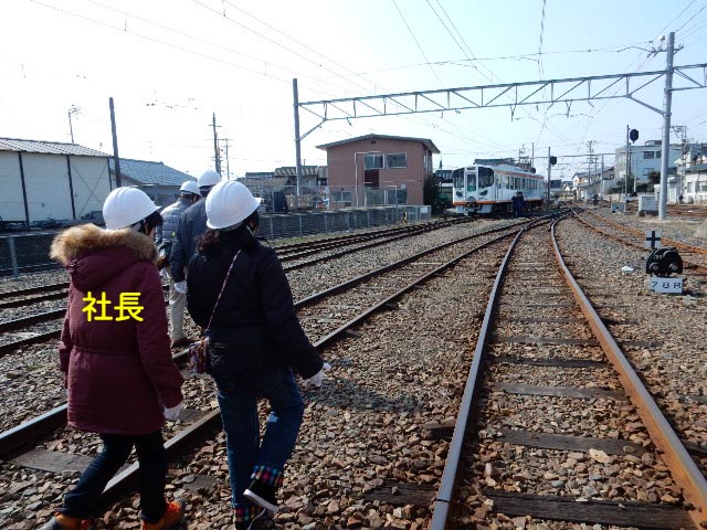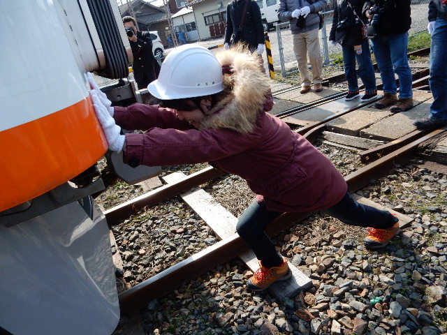 さて社員旅行ですが、まずは手押し車庫入れ体験?からスタートです。